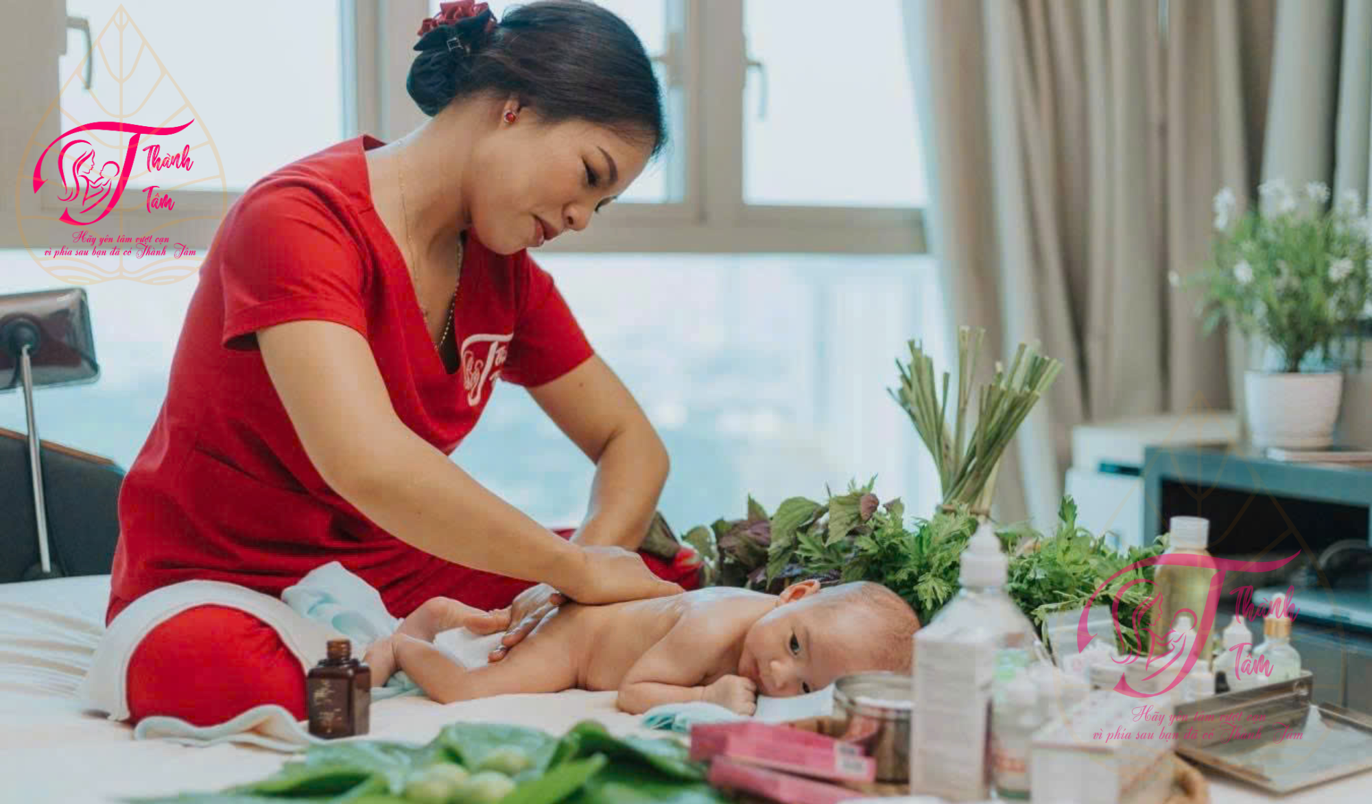 - Thay vì phải đưa bé đến các cơ sở y tế hoặc spa, mẹ chỉ cần ở nhà. Đội ngũ điều dưỡng của Thành Tâm sẽ đến tận nơi, mang theo đầy đủ dụng cụ và thực hiện dịch vụ. Điều này giúp bé không bị thay đổi môi trường, tránh tiếp xúc với nguồn bệnh bên ngoài, đồng thời mẹ tiết kiệm thời gian, công sức.